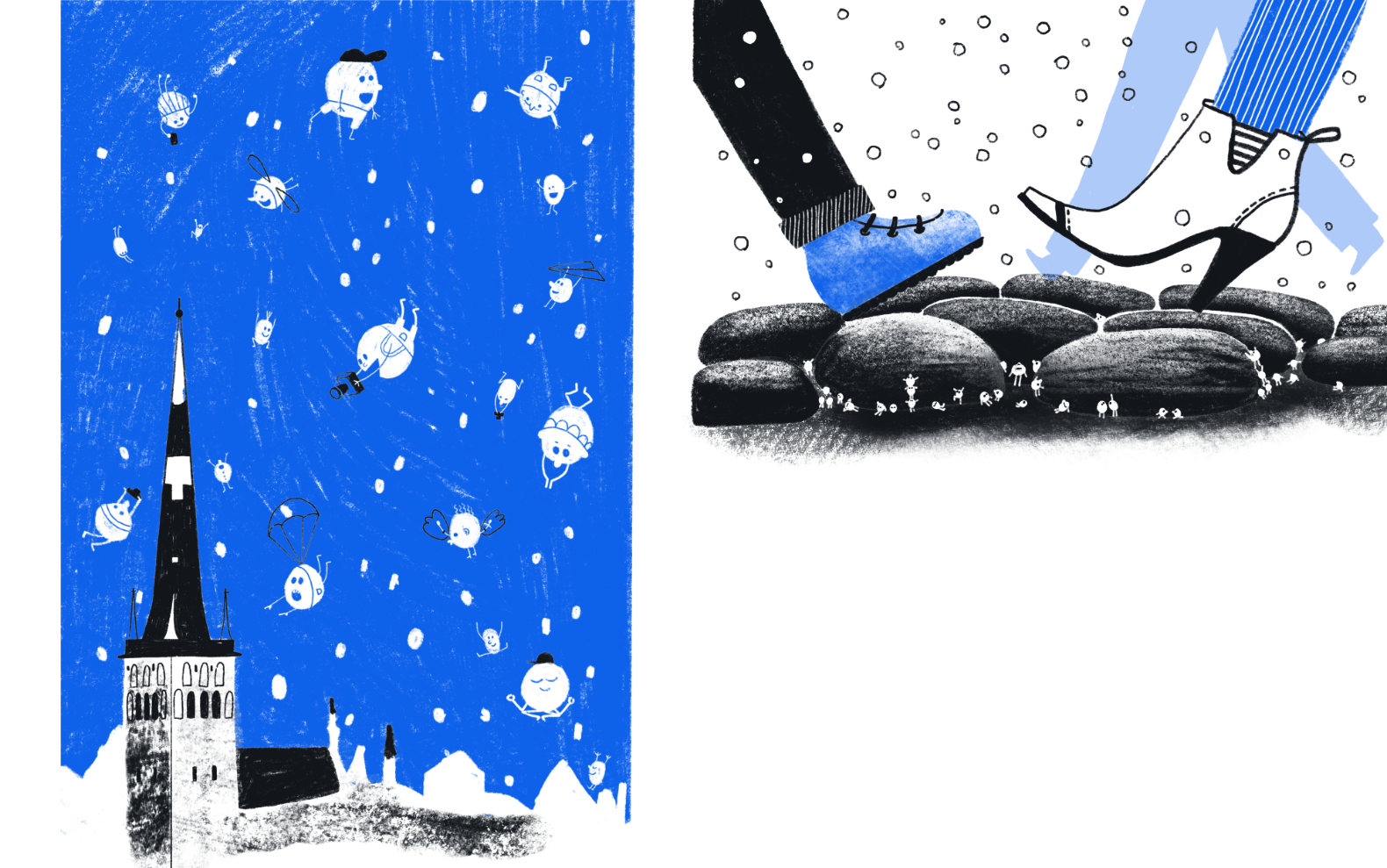 Over thirty absurd stories about winter. The tales include runny noses, a friendly mitten, winter swimmers, dangerous icicles, and many others.
